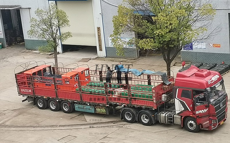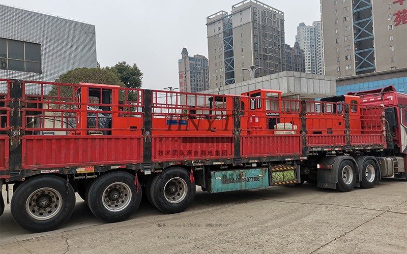 客戶采購了4套雙駕駛室蓄電池湘潭電機車,裝滿了2輛大卡車。