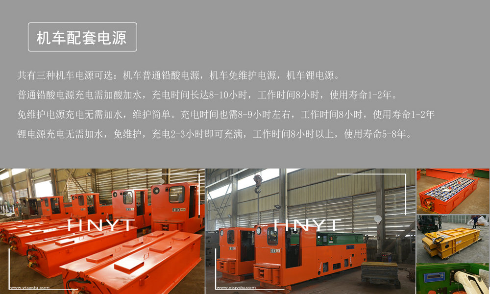 電源選配:目前鋰電池電機(jī)車還不能在煤礦中運(yùn)用,我們還有其他兩種電源可供選配。一是普通鉛酸電源,需加電解液維護(hù)及充電,第二種免維護(hù)電源,無(wú)需加電解液,可直接進(jìn)行充電。