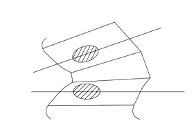 齒輪在重新裝配后齒側(cè)間隙應(yīng)調(diào)整到0.15-0.4 mm,也就是說在大輪旋轉(zhuǎn)一周中,任一對(duì)齒側(cè)面的間隙不應(yīng)小于0.15 mm,任意一對(duì)齒側(cè)面的更大間隙不大于0.4 mm。螺旋錐齒輪齒面的理想接觸區(qū)域,是位于齒高中部略偏向小端,以近似長橢圓形狀且不超出兩端為好,如下圖:
